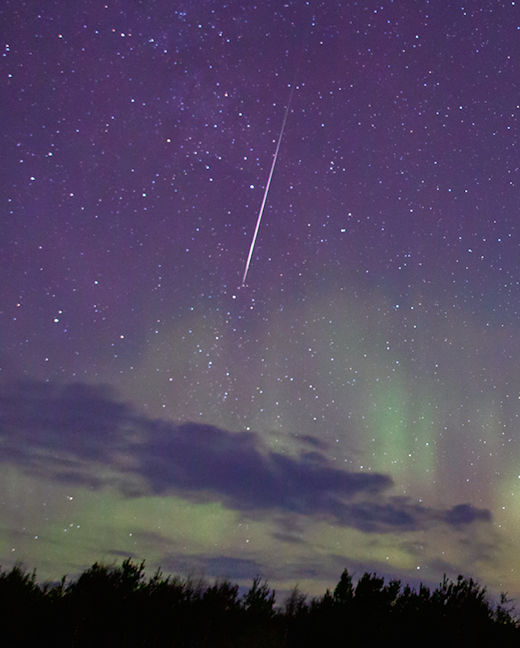 "It flew through Cygnus during the breakup of an aurora display around 11 p.m.," says Tough.