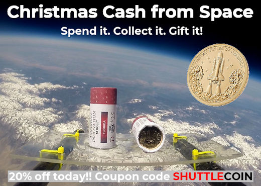 20% OFF COLLECTABLE COINS TODAY: Christmas is coming. Are you looking for a far-out gift? Check out the Earth to Sky Store. It's filled with items that have visited the edge of space onboard cosmic ray research balloons. Today we're featring collectable dollar coins from the US Mint: